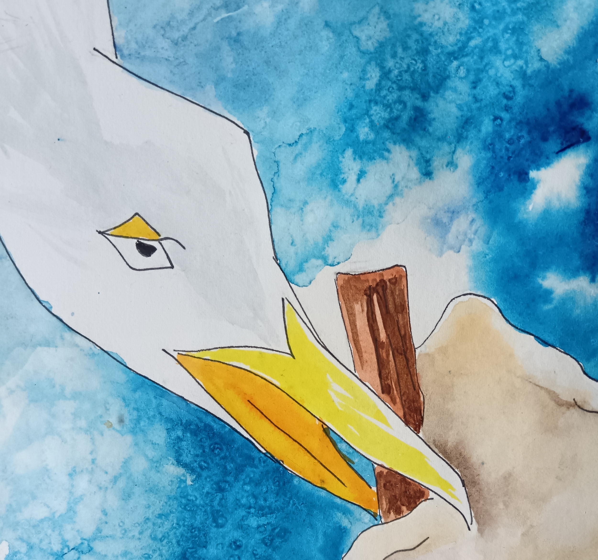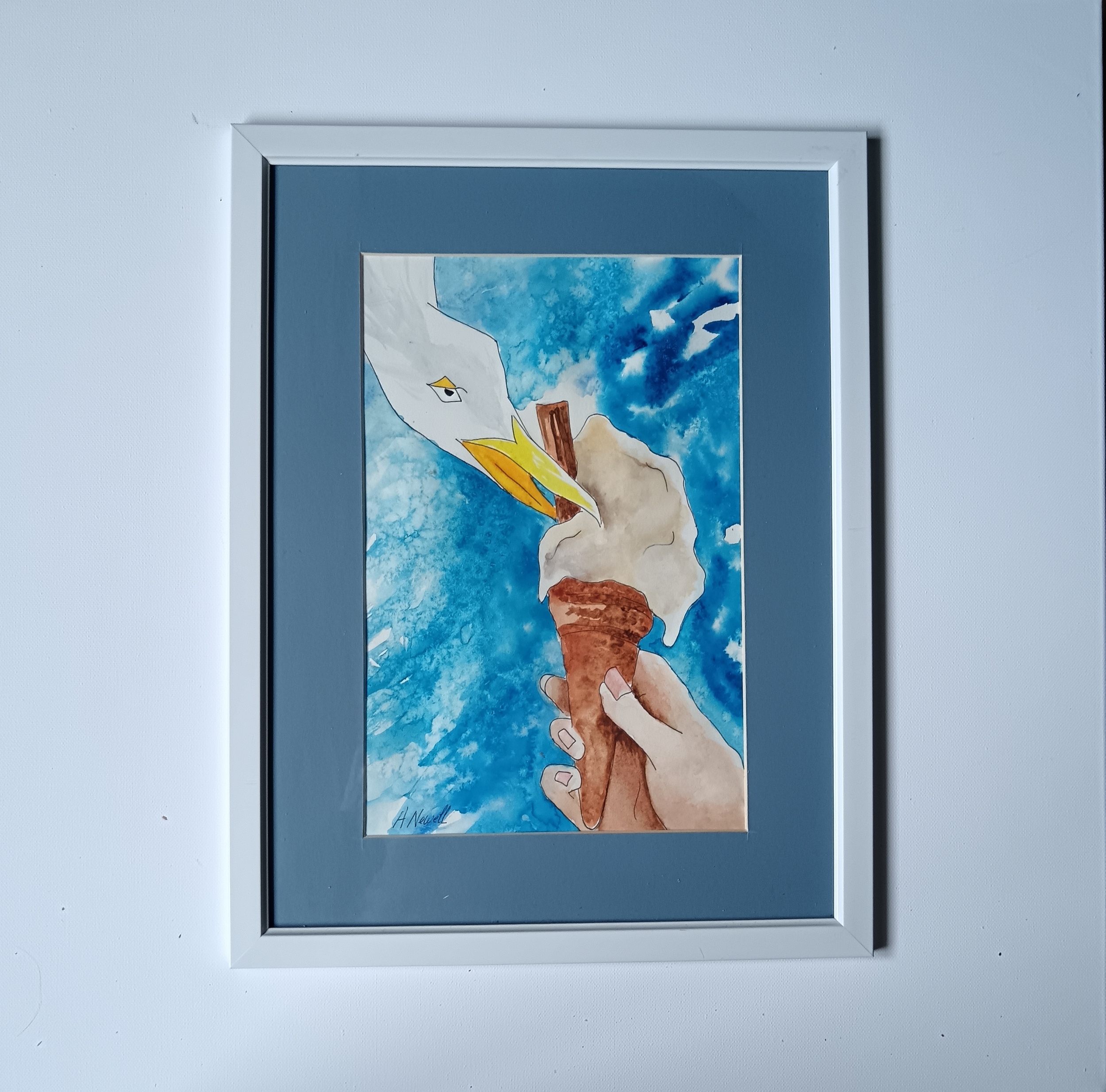 This seagull was painted after I had a piece of cake eaten by a dive bombing seagull in Seaford. Everyone on the coast has a story to tell about a hungry seagull.